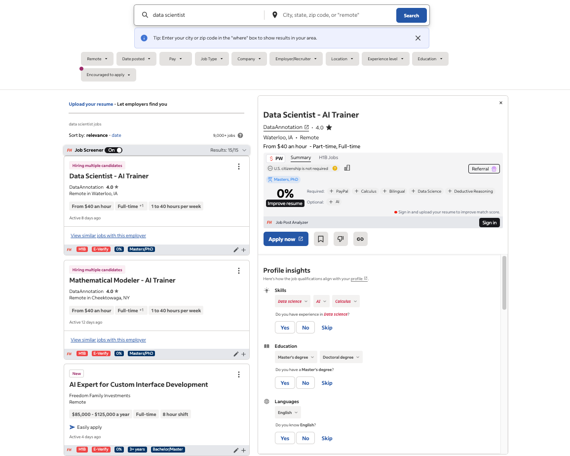 Processing job 1/15: Data Scientist - AI Trainer at DataAnnotation